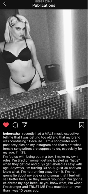 « I recently had a MALE music executive tell me that I was getting too old and that my brand was confusing. Because…I’m a songwriter and I post sexy pics on my Instagram and that’s not what female songwriters are suppose to do, especially for my age. […] I’m turning 30 on August 30 and you know what, I’m not running away from it. […] I’m gonna celebrate my age »
