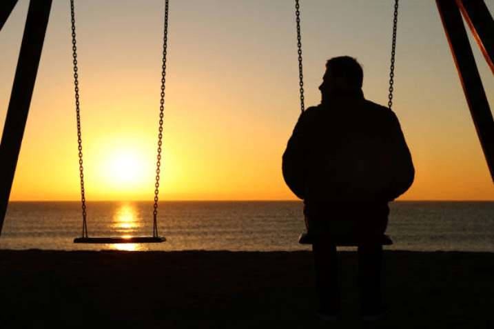 Guillem, A. (2019). Homme seul sur une balançoire regardant le siège vide [image en